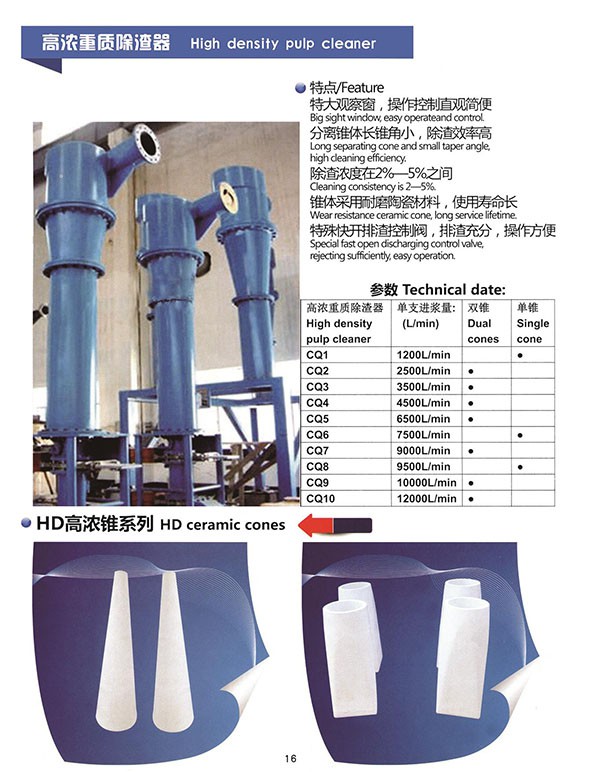 2.輕質除渣器,是從下面注入紙漿,因為離心力和重力,比重大的二次纖維往外運動,從下端集中,比重輕的雜質接近圓心運動,從容器的上端排出。